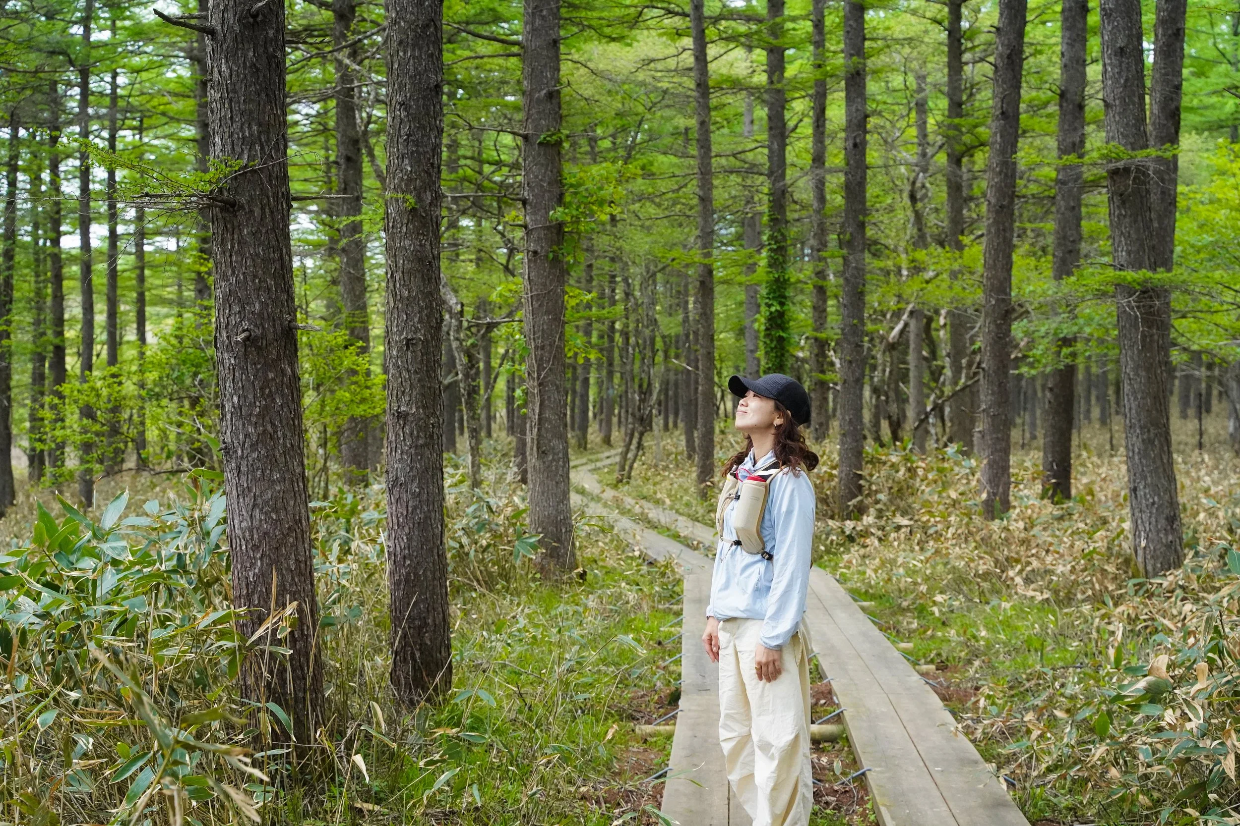 那須塩原市の標高約1,230mに位置する高層湿原。トレッキング初心者でも歩きやすい木道が整備されており、春から初夏にかけては芽吹いた植物や野鳥に出会える。森を抜けると広がる静謐な風景が、心をそっと整えてくれる。
